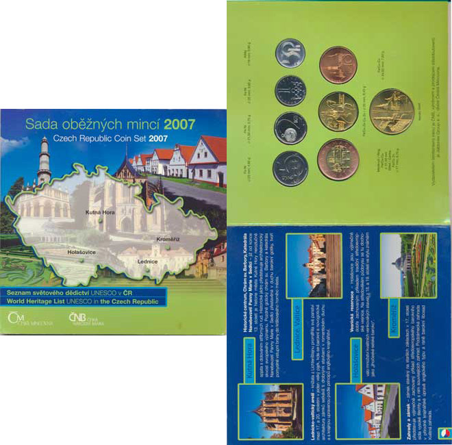 Ročníková sada mincí 2007 +žeton s městy UNESCO (Kroměříž, Holašo vice, Valtice, Lednice, K. Hora) (10 000 ks)
