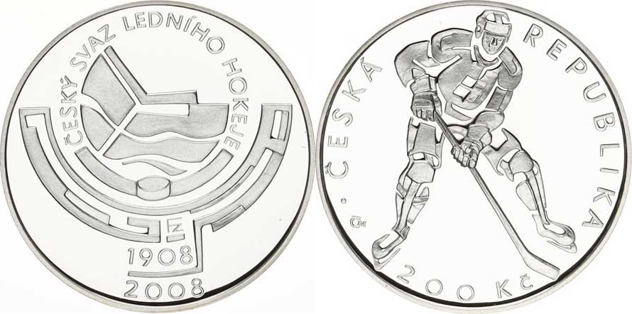 Česká republika (1993-), 200 Kč 2008 - Český svaz ledního hokeje orig. etue, kapsle