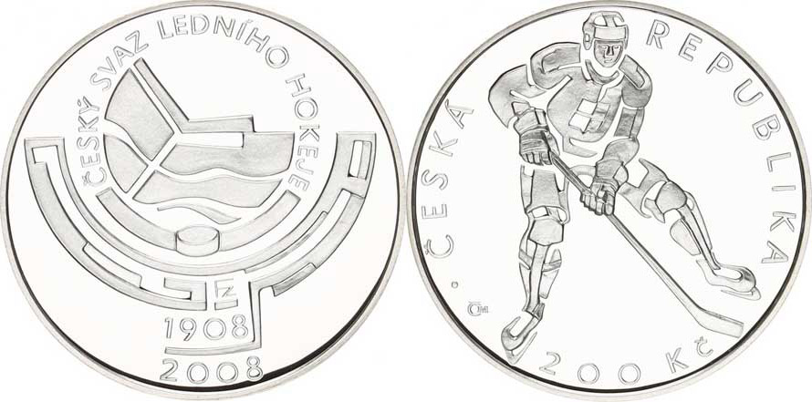 Česká republika (1993-), 200 Kč 2008 - Český svaz ledního hokeje orig. etue, kapsle