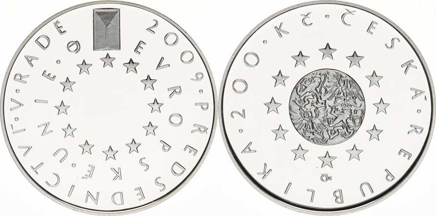 Česká republika (1993-), 200 Kč 2009 - Předsednictví v radě EU kapsle +orig.etue +ce