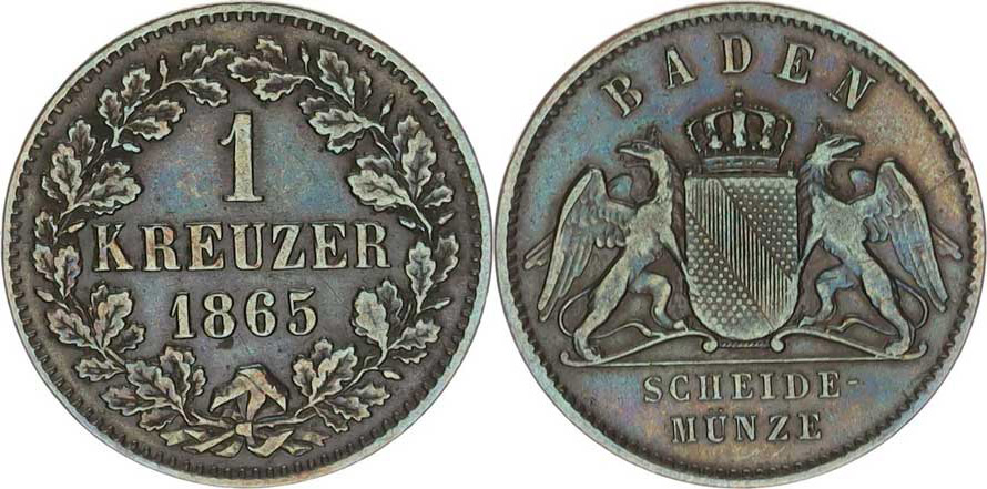 Baden, Friedrich I. (1852-56-1907), 1 Kreuzer 1865 KM 242