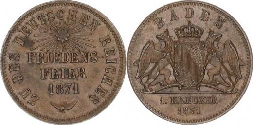 Baden, Friedrich I. (1852-56-1907), 1 Kreuzer 1871 - vítězství nad Francií KM 252