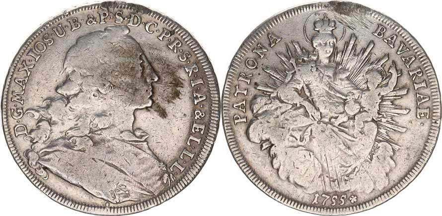 Bavorsko, Maximilian III.Joseph (1745-1777), Tolar 1755 - Madona KM 500,2, stopa po oušku