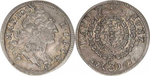 Bavorsko, Maximilian III.Joseph (1745-1777), 3 kr. 1765 b.zn. KM 477