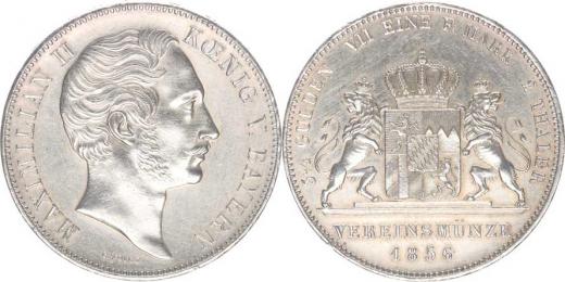 Bavorsko, Maximilian II. (1848-1864), 2 Tolar (3-1/2 gulden) 1856 - dva gryfové nesoucí erb KM 837