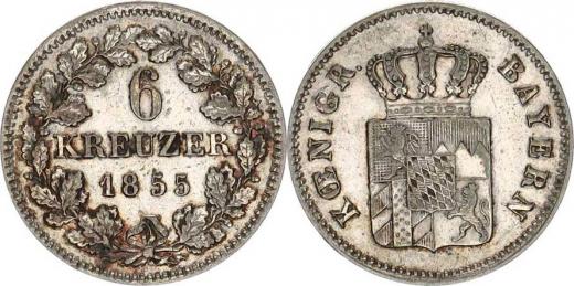 Bavorsko, Maximilian II. (1848-1864), 6 Kreuzer 1855 KM 424