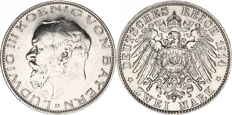 Bavorsko, Ludwig III. (1913-1918), 2 Mark 1914 D KM 1002 "R"