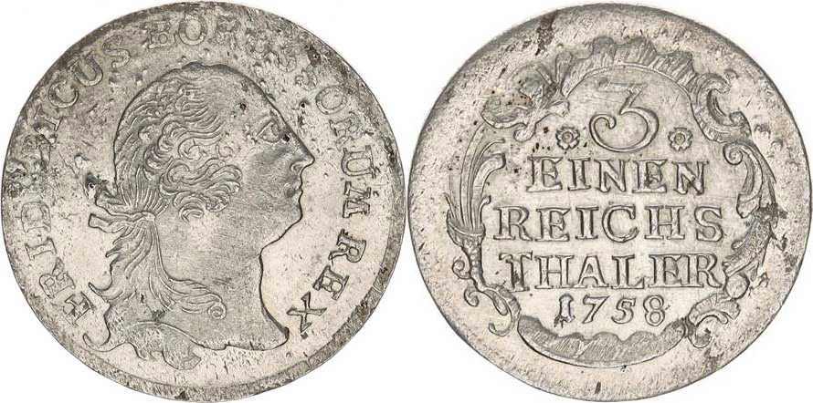 Prusko, Friedrich II.(1740-1786), 1/3 tolaru 1758 b.zn., Drážďany KM 285 "R" 8,515 g