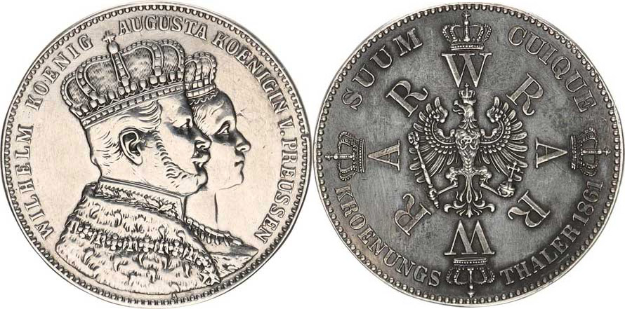 Prusko, Wilhelm I. (1861-1888), Tolar spolkový 1861 A - korunovační KM 488 18,119 g