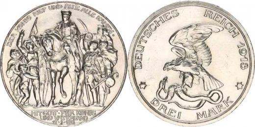 Prusko, Wilhelm II. (1888-1918), 3 Mark 1913 A - Král volá KM 534