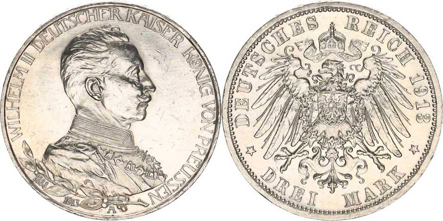 Prusko, Wilhelm II. (1888-1918), 3 Mark 1913 A - 25. výročí vlády Y. 535