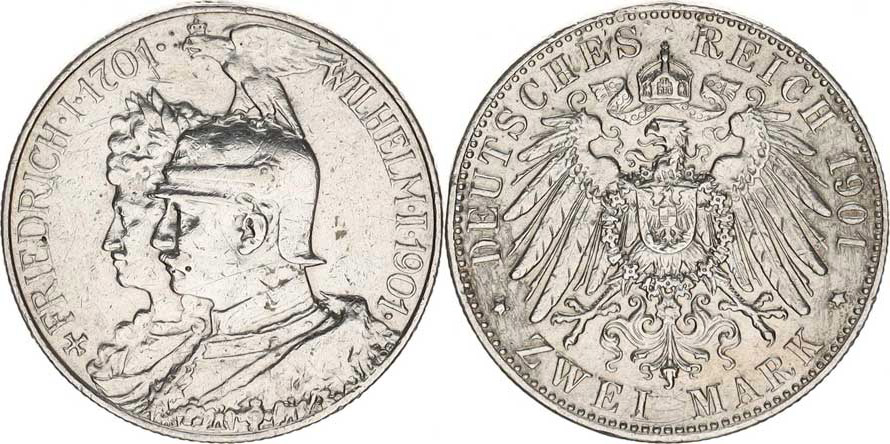 Prusko, Wilhelm II. (1888-1918), 2 Mark 1901 A - 200 let království Y. 128; KM 525