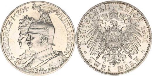 Prusko, Wilhelm II. (1888-1918), 2 Mark 1901 A - 200 let království Y. 128; KM 525