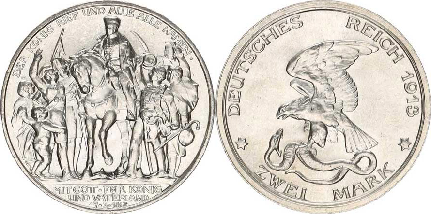 Prusko, Wilhelm II. (1888-1918), 2 Mark 1913 A - Král volá KM 532