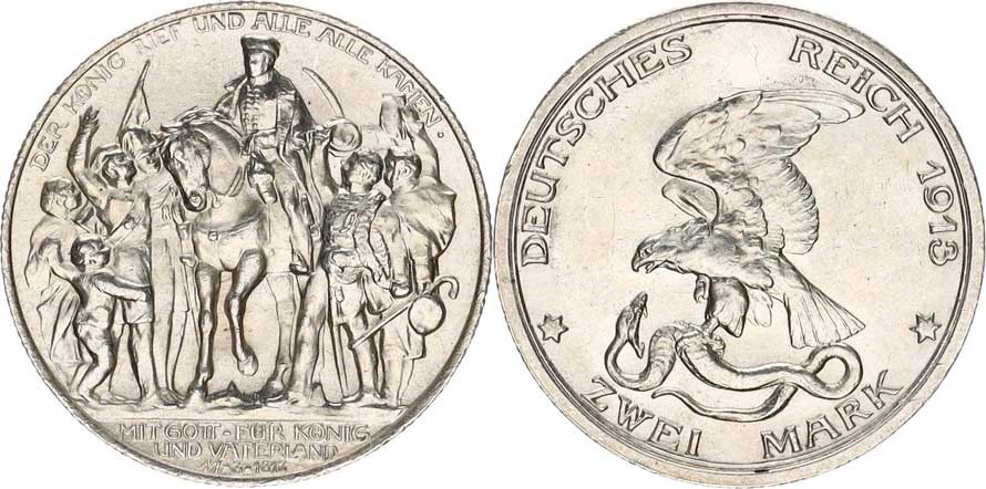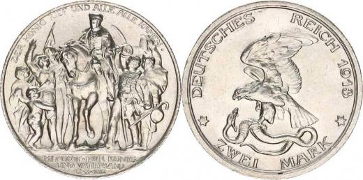 Prusko, Wilhelm II. (1888-1918), 2 Mark 1913 A - Král volá KM 532, tém.