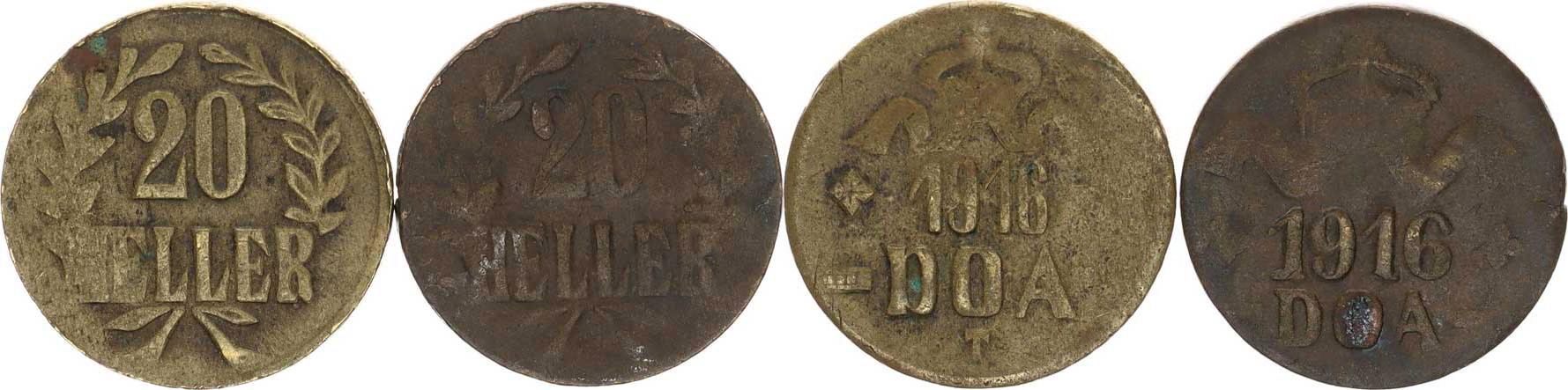 20 Heller 1916 T - mosaz KM 15a var.: velká koruna +malá k oruna 2 ks