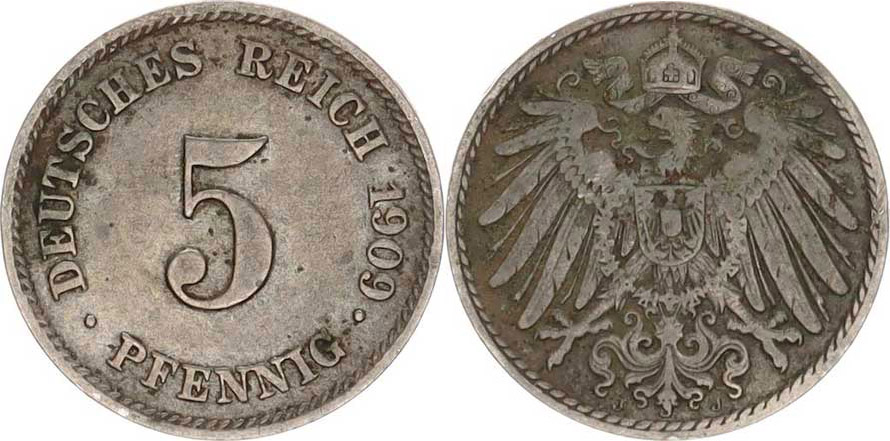 5 Pfennig 1909 J "R"