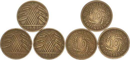 Výmarská republika (1918-1933), 10 Rntpf. 1923 A, 10 Rpf. 1935 F, 1936 A 3 ks