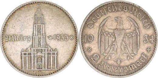 Německo - 3 říše, 1933-1945, 2 RM 1934 J - kostel s datem