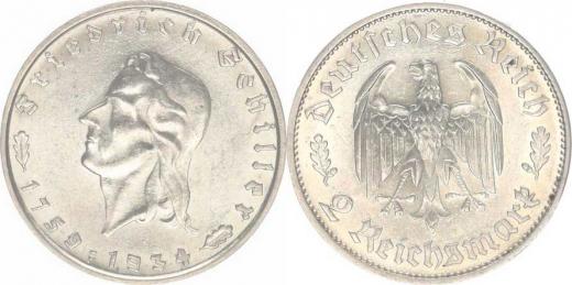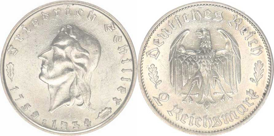 Německo - 3 říše, 1933-1945, 2 RM 1934 F - Schiller KM 84