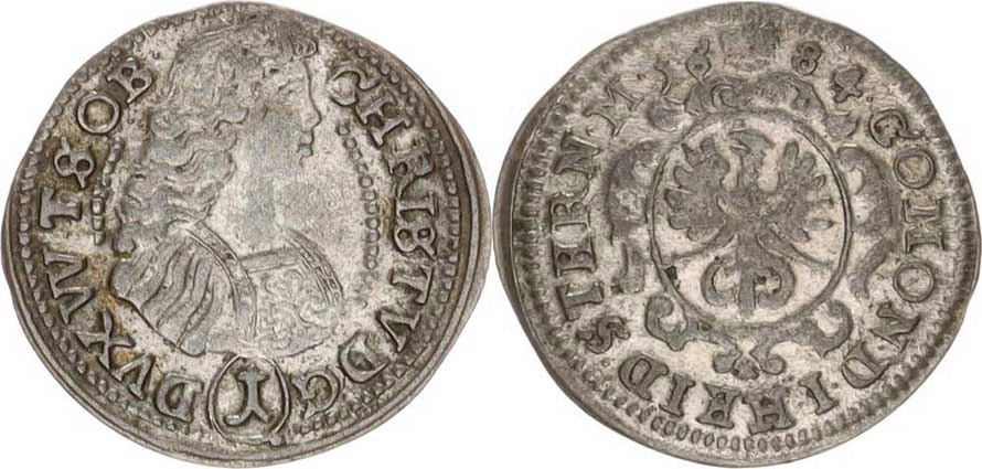 Würtemberg-Olešnice, Christian Ulrich (1668-1704), 1 kr. 1684 Sa 283, Kop. 6280