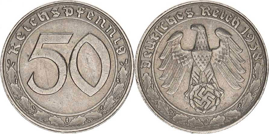 50 Rpf. 1938 D - Ni KM 95 "R", vlas. rys.