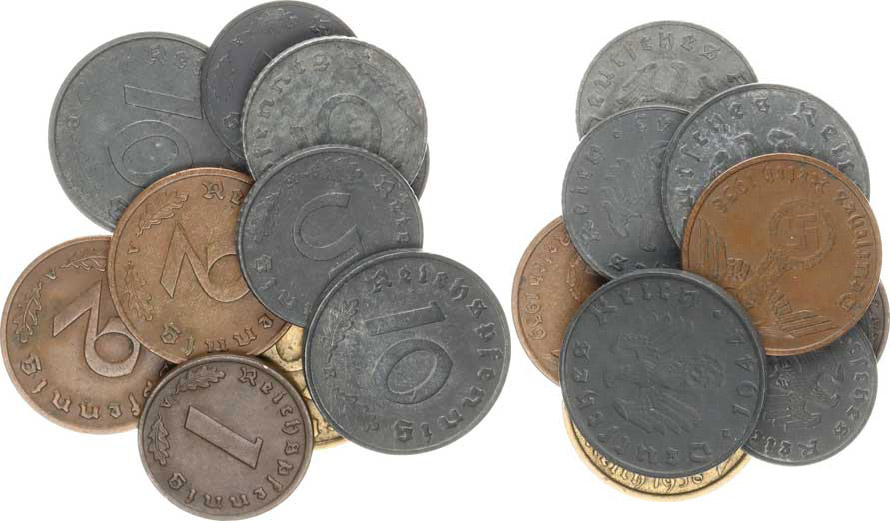 Německo - 3 říše, 1933-1945, 10 Rpf. 1938 A, 1940 E, 1944 B; +5 Rpf. 1940 B, 1943 E; +2 Rpf. 1