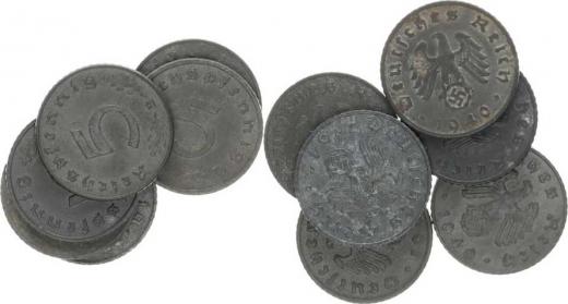 Německo - 3 říše, 1933-1945, 5 Rpf. 1940 B, E, J, 1941 F, 1942 A, 1943 E 6 ks