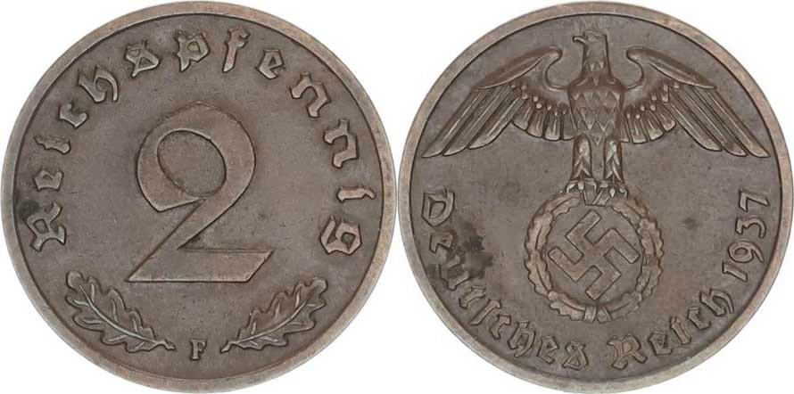 Německo - 3 říše, 1933-1945, 2 Rpf. 1937 F "R"