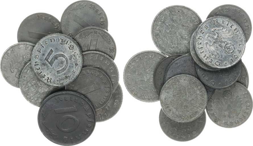 Německo - 3 říše, 1933-1945, 1 Rpf. 1940 A, 1941 E, 1942 B, D, E, 1943 A, B, 1944 B; +5 Rpf. 1