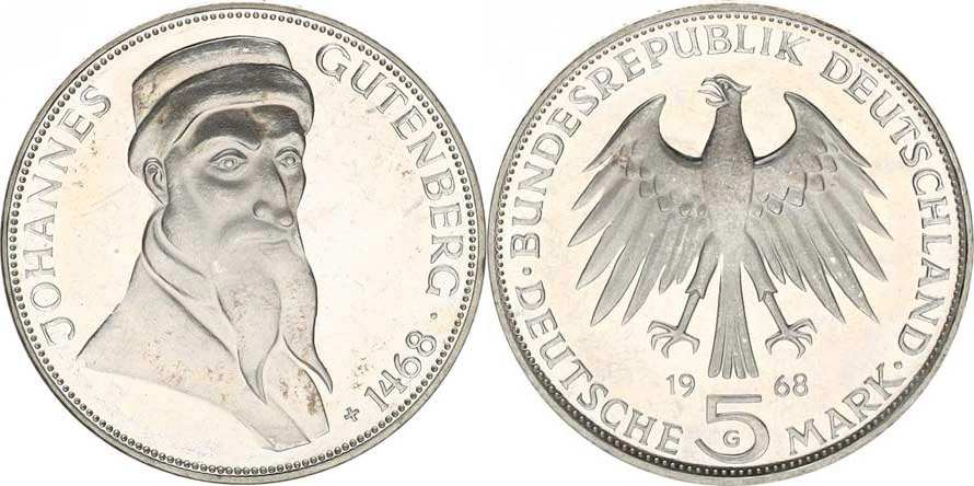 5 DM 1968 G - Gutenberg KM 122 "R"