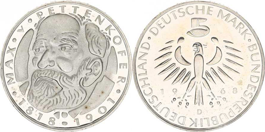 Německo - BRD (1949-), 5 DM 1968 D - Pettenkoffer KM 123 "R"