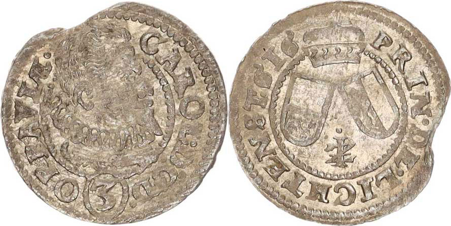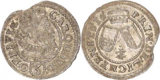 Opava, Karel Liechtenstein (1614-1627), 3 kr. 1616 IZ , Ziesler "RR" Sa 24; Kop. 6368 1,190g