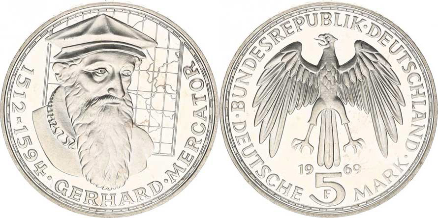 Německo - BRD (1949-), 5 DM 1969 F - Mercator KM 126,1 "R"