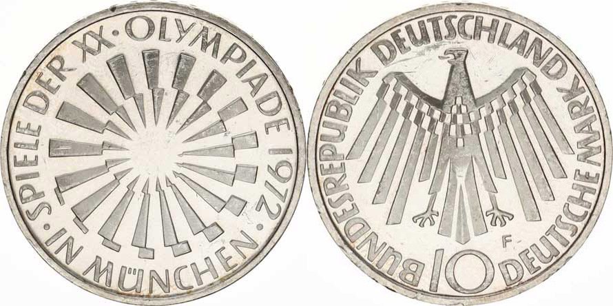 Německo - BRD (1949-), 10 DM 1972 F - OH Mnichov, IN MÜNCHEN KM 134,1