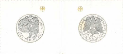 10 DM 1987 J - 750 let města Berlín Ag 625 15,5 g KM 166 orig. bankovní balení