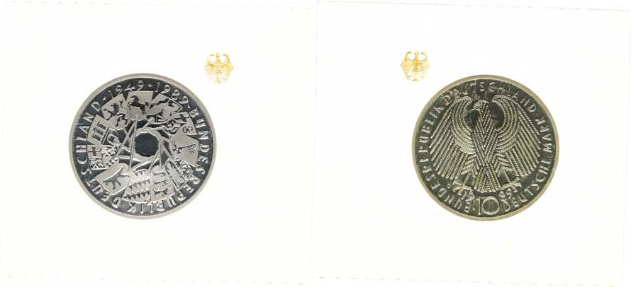 Německo - BRD (1949-), 10 DM 1989 G - 40.výročí republiky Ag 625 15,5 g KM 173