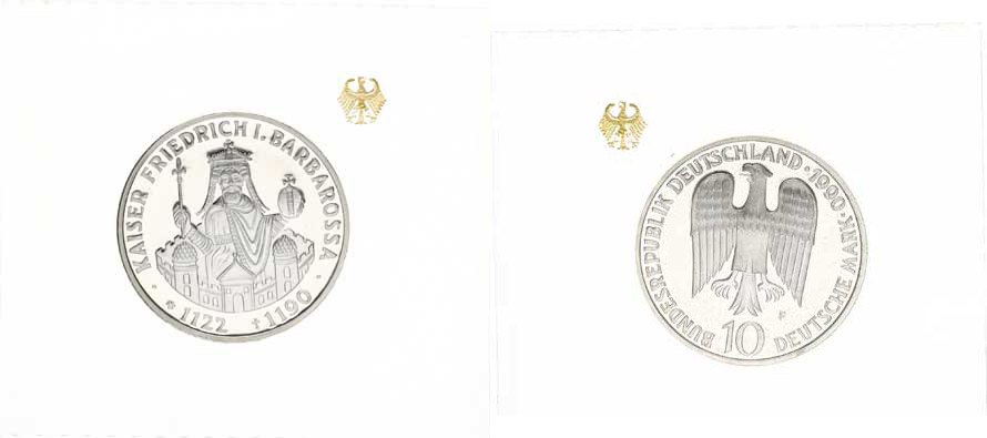 10 DM 1990 F - Friedrich I. Barbarossa Ag 625 15,5 g KM 174 orig. bankovní balení