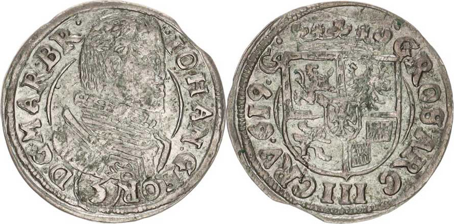 Krnov, Johann Georg (1607-1624), 3 kr. 1619 CP SA 127 var.: .... D:G.MAR.BR. - erb v rovn