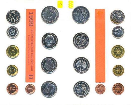 Německo - BRD (1949-), Ročníková sada mincí 1999 minc. D (1, 2, 5, 10, 50 Pf., 1, 5,