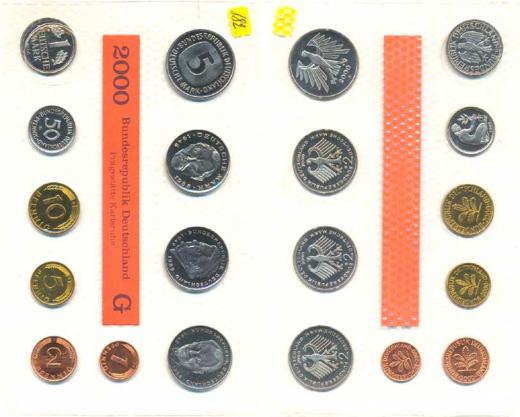 Německo - BRD (1949-), Ročníková sada mincí 2000 minc. G (1, 2, 5, 10, 50 Pf., 1, 5,