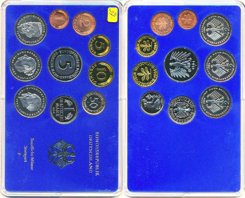 Německo - BRD (1949-), Ročníková sada mincí 1984 minc. F (1, 2, 5, 10, 50 Pf., 1, 5,