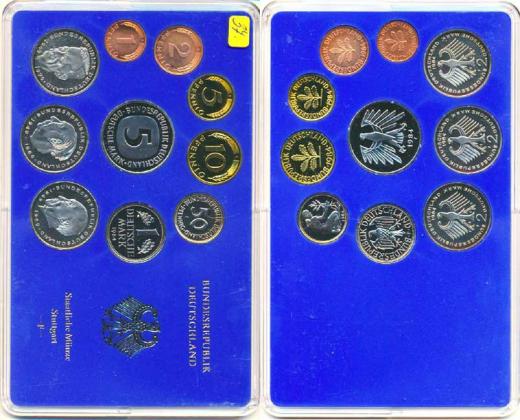 Ročníková sada mincí 1984 minc. F (1, 2, 5, 10, 50 Pf., 1, 5, 2 DM - Adenauer, Heuss, Schumacher) 10 ks v orig. plexi balení mincovny PS 73