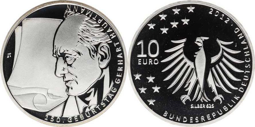 Německo - BRD (1949-), 10 Euro 2012 J - Gerhart Hauptmann Ag 625 16 g