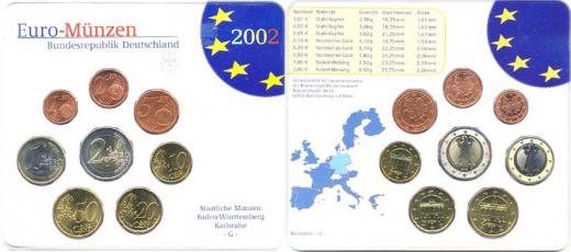 Ročníková sada mincí EURO 2002 minc. G (1, 2, 5, 10, 20, 50 Cent, 1, 2 Euro) orig. balení mincovny MS 127