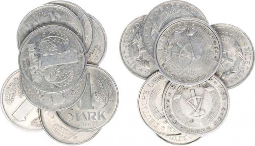 Německo - DDR (1949-1990), 1 M 1956 (2x), 1962, 1972, 1975, 1977, 1978, 1982 vše A 8 ks