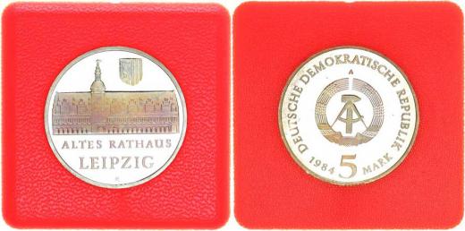 Německo - DDR (1949-1990), 5 M 1984 A - Lipsko, stará radnice KM 96 +certifikát