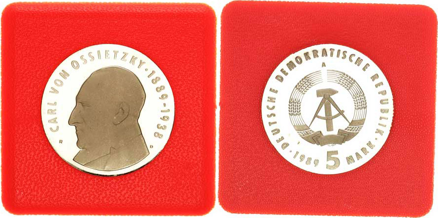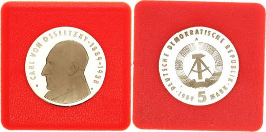 Německo - DDR (1949-1990), 5 M 1989 A - Carl von Ossietzky KM 131 "R" +certifi