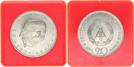 Německo - DDR (1949-1990), 20 M 1971 - Heinrich Mann KM 33 +certifikát