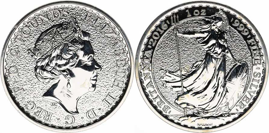 Anglie, Alžběta II. (1952-2022), 2 Pound 2016 (1 Oz Ag) - Stojící Britania, 10 x - každá ve vl